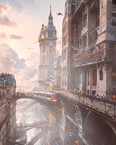 In this time-space, where the “Créateur” seems to have made a “200-year leap,” or in other words, deliberately introduced 200 years’ worth of technological innovation, a dreamlike performance called “Géminère” was being staged by “Visionaires,” or users of special technology, in and around Pallas, the capital of the old Parisian bridge city and the new Défense region. In this time-space, a dreamlike performance called “Géminère” was being staged by “Visionaires,” or users of special technology, around the capital city of Pallas, which is composed of the old Parisian bridge city and the newly emerged Défense region.